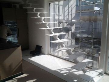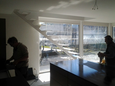 Auf Kundenwunsch erstellten wir eine Mittelholmtreppe. Die Treppenstufen wurden aus einem 8mm Stahlblech gefertigt und auf den Holm geschraubt.