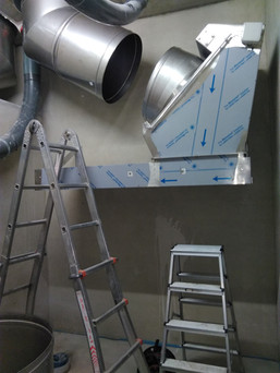 Am Ende des Abwurfschachtes wird eine Klappe montiert, um den abgeworfenen Sack zu bremsen und ein Aufplatzen im Container zu verhindern.